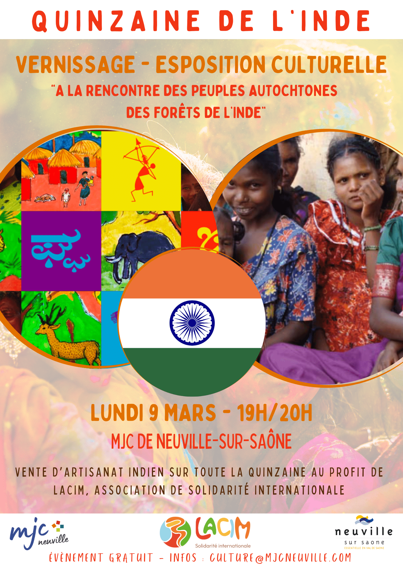 Dans le cadre de la Quinzaine de l’Inde, la MJC de Neuville-sur-Saône accueille le vernissage de l’exposition LACIM le lundi 9 mars.