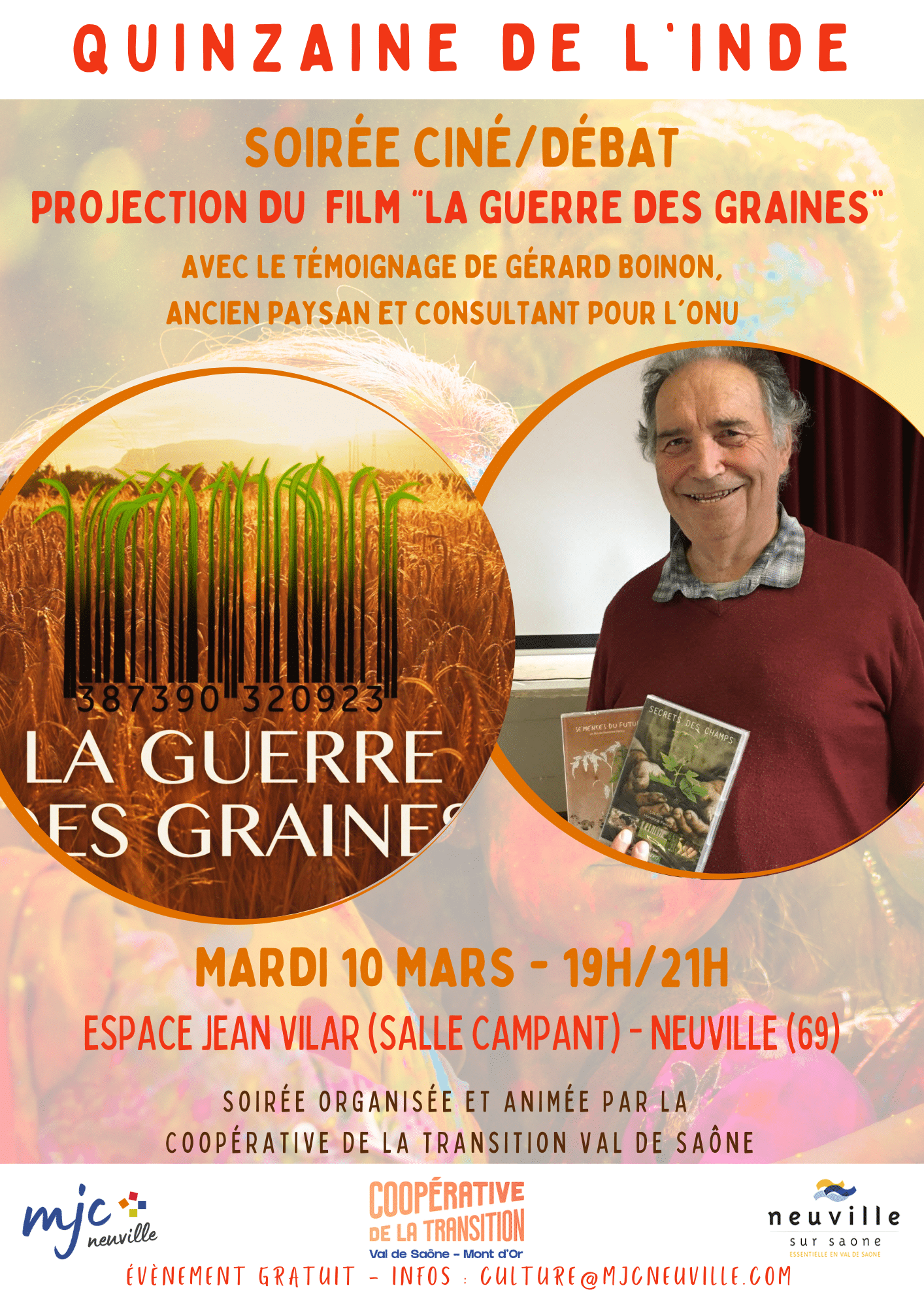 Dans le cadre de la Quinzaine de l’Inde, la MJC de Neuville-sur-Saône vous propose une soirée projection suivie d’un débat, ouverte à toutes et tous.